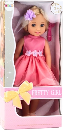 Questa affascinante bambola ha lunghi capelli biondi stilizzabili completati da un adorabile fermaglio. Il set include un pettine rosa per la sistemazione dei capelli. La bambola indossa un bello abito rosa con dettagli floreali e scarpe rosa che completano il suo outfit. Il suo trucco delicato e gli occhi e le labbra attentamente dipinti aggiungono eleganza e fascino.