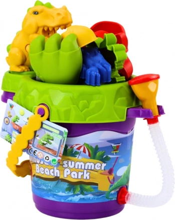 Set da sabbia per bambini a tema dinosauri – secchiello con doccino, annaffiatoio e formine