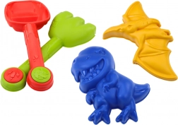 Paletta e rastrello e 2 formine a forma di dinosauro stimolano la fantasia e il divertimento dei bambini. I bambini possono creare figurine, strade e castelli e sviluppare la manualità durante il gioco.