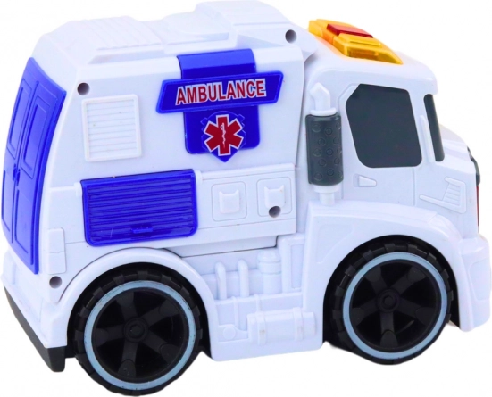 Ambulanza interattiva per piccoli soccorritori con effetti luminosi e sonori realistici, meccanismo a inerzia e struttura resistente nei colori bianco e blu. Le grandi ruote nere garantiscono una guida stabile su diverse superfici e la scritta “AMBULANCE” ne sottolinea l’autenticità. Un ottimo giocattolo per sviluppare immaginazione, sensi e motricità fine dei bambini dai 3 anni.