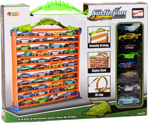 Set universale per i piccoli appassionati di auto: con un solo montaggio crei sia una pista da corsa con loop a 360° sia un parcheggio multipiano. Facile da assemblare, con maniglia stabile per il trasporto e 8 diverse macchinine per un divertimento immediato. La combinazione di colori arancione, verde e blu attira l’attenzione e stimola il gioco creativo.