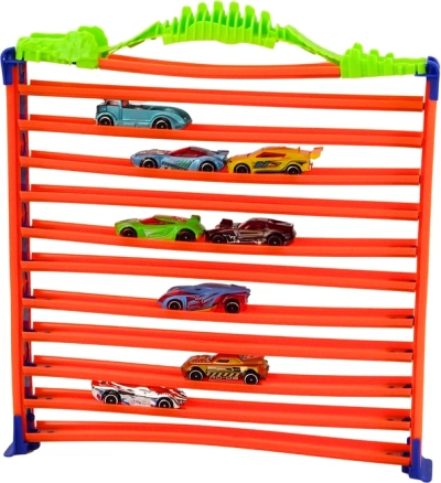 Questo intelligente set 2 in 1 combina azione di corsa veloce e parcheggio pratico. Costruisci la pista con loop a 360° per gare dinamiche e poi riconfigurala facilmente in un imponente garage con 11 piani per riporre l’intera collezione di macchinine. Grazie ai collegamenti semplici i bambini possono montare la pista da soli e, una volta assemblati, gli elementi verdi creano una maniglia robusta per un facile trasporto.