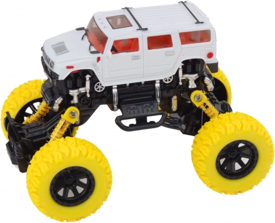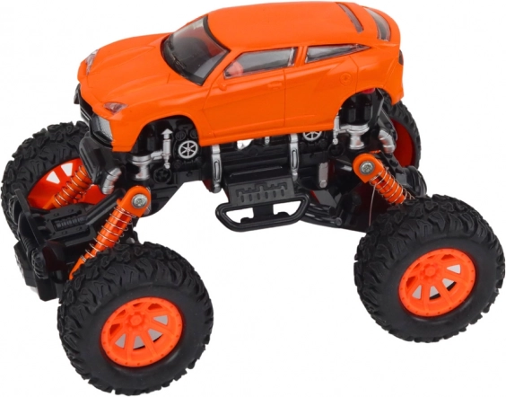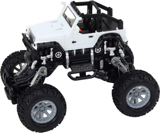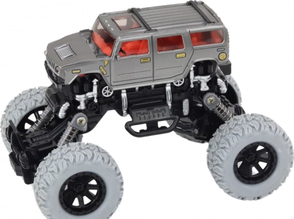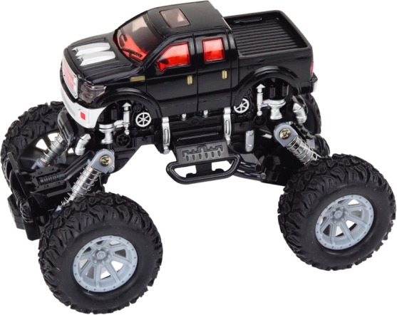 Il fuoristrada 4x4 è progettato per un gioco dinamico in condizioni impegnative. Le sospensioni rialzate e le grandi ruote scolpite permettono di superare facilmente ostacoli, sassolini e superfici irregolari. Dettagli realistici, come paraurti e elementi laterali, donano al giocattolo l'aspetto di un vero veicolo off-road.