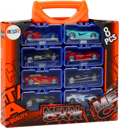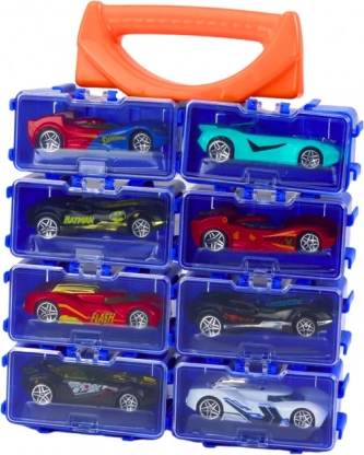 Scopri il divertimento in viaggio con un set di 8 macchinine in metallo riposte in una pratica valigetta. Ogni macchinina ha il proprio stile e colore; la valigetta con divisori garantisce ordine e facile trasporto. Ideale per i piccoli appassionati di auto dai 3 anni, con certificazione CE e norma EN71.