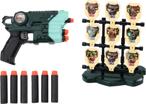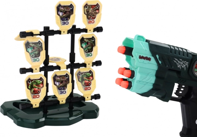 Il set di tiro a tema dinosauri, progettato per i bambini, offre un'esperienza di gioco unica che unisce divertimento e sviluppo delle abilità. Il set include una pistola leggera ed ergonomica che consente una manipolazione semplice anche per le mani più piccole.