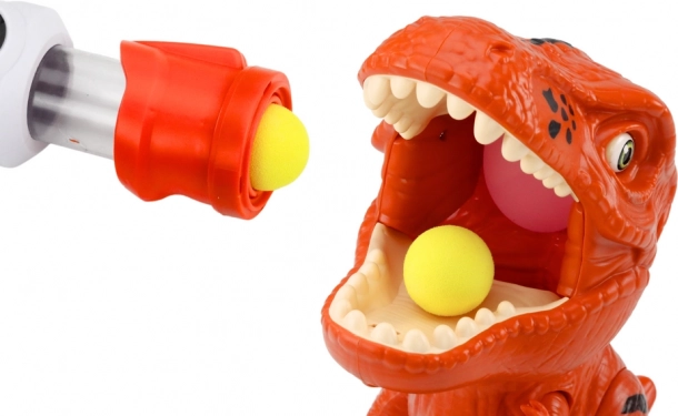 L'obiettivo del gioco è colpire la bocca aperta del dinosauro mentre si muove. Quest'attività migliora la coordinazione e le abilità motorie dei bambini. Quando colpiscono il bersaglio, il dinosauro emette un ruggito realistico e il contatore mostra il punteggio, permettendo ai bambini di competere tra loro.