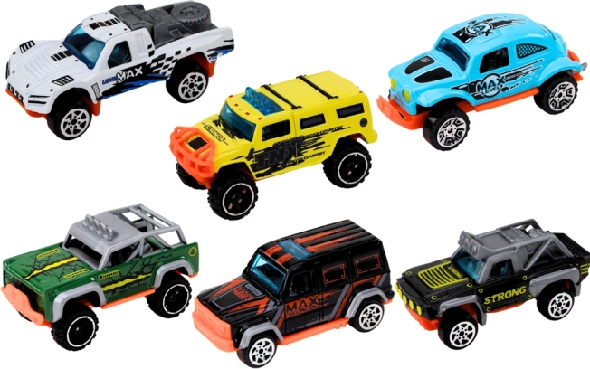 Scopri il divertimento con il nostro set di auto fuoristrada in metallo in scala 1:64, che include sei modelli dettagliati. Queste automobiline si distinguono per la solida costruzione e l'aspetto autentico, portando gioia ai piccoli esploratori e ai collezionisti.