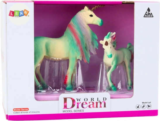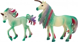 Incantevole set di 2 figure di unicorni – adulto e cucciolo – in un elegante colore verde che farà felici piccoli e grandi fan delle creature fiabesche. Lavorazione dettagliata, texture realistiche e criniera e coda colorate donano fascino alle figure. Adatte al gioco e anche come decorazione per la cameretta, realizzate in materiale resistente, con certificazione CE e norma EN71.