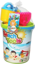 Set colorato di giochi da sabbia per bambini dai 3 anni con tutto il necessario per giocare in modo creativo in spiaggia o nella sabbiera: grande secchio con immagini, mulino per la sabbia, paletta, rastrello, 3 formine e annaffiatoio. Realizzato con materiali resistenti e sicuri, in colori vivaci per stimolare fantasia e motricità. Conforme alle norme CE ed EN71.