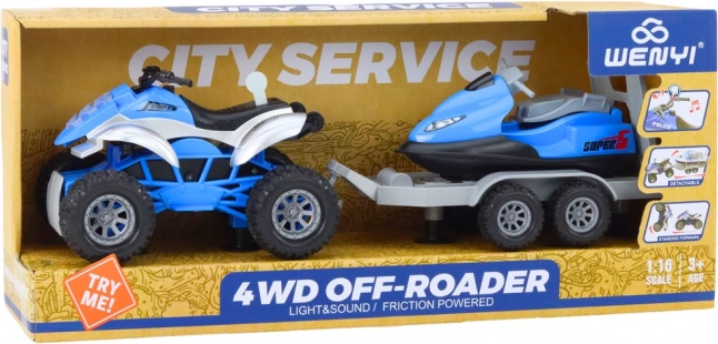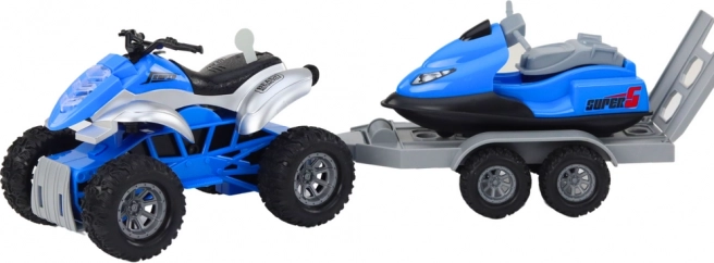 Scopri il set di giocattoli d’azione con quad, rimorchio e moto d’acqua per bambini dai 3 anni. Grazie alla lavorazione realistica, al rimorchio funzionale e alle ruote robuste, offre avventure creative sulla terra e negli scenari acquatici. Perfetto come regalo, con attenzione a sicurezza e robusta fattura.