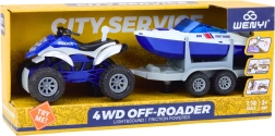 Quad della polizia con rimorchio per barca e motoscafo
