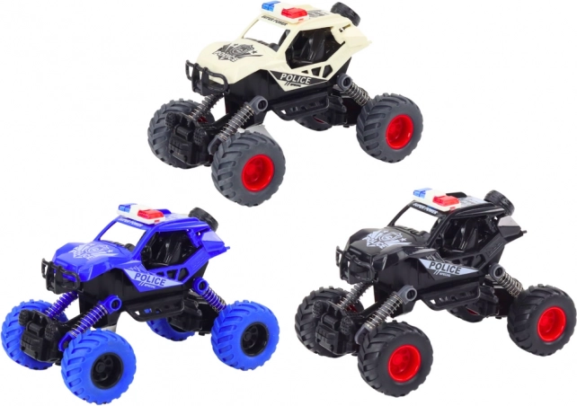 La macchinina vanta un design realistico che include dettagli come sirene, luci e distintivi della polizia. Grazie a molle speciali consente salti spettacolari, permettendo al tuo bambino di superare ostacoli e realizzare acrobazie.