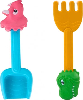 Set di attrezzi pratico con motivi giocosi. Con essi i bambini scavano facilmente, livellano la sabbia e creano solide basi per le loro costruzioni.