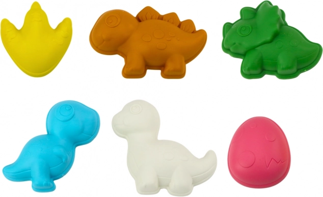 Formine colorate a forma di dinosauri, uova e impronte garantiscono impronte vivaci e originali creazioni di sabbia.