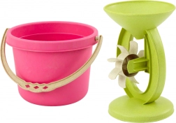 Versa l'acqua o la sabbia e guarda le ruote del mulino girare. Il manico robusto del secchiello facilita il trasporto di acqua e sabbia.