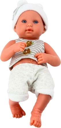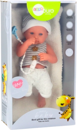 Questa bambola realistica, con delicato outfit bianco‑grigio, colpisce per i tratti del viso curati nei dettagli e gli accessori piacevoli. Grazie agli arti mobili, i bambini si divertiranno con un gioco interattivo: cambio, cullata e nanna sotto la morbida copertina. È incluso anche un ciuccio con laccetto che non si perde.