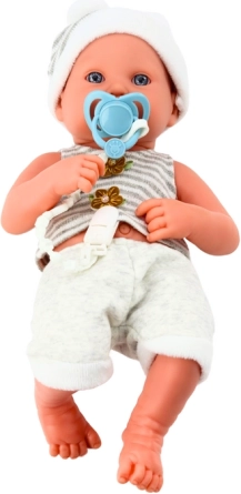 Questa adorabile bambola neonato in abito bianco‑grigio entusiasmerà i piccoli caregiver con l'aspetto realistico e gli accessori. Ha braccia e gambe snodate, ciuccio con cordoncino e una morbida copertina per le coccole. Realizzata con materiali sicuri, stimola empatia, motricità fine e gioco creativo.