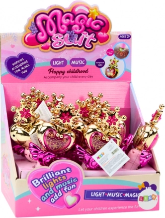 La bacchetta non è solo splendida alla vista, ma offre anche straordinari effetti luminosi colorati, capaci di creare un'atmosfera magica. Inoltre è dotata di effetti sonori che amplificano la sensazione di potere magico. È la combinazione perfetta di estetica e funzionalità, grazie alla quale ogni gioco diventa indimenticabile. La bacchetta è ideale come complemento a un costume da principessa, completando l'outfit e trasportando la piccola nel mondo delle fiabe e delle magie.