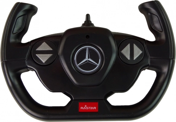 Plastica resistente, cabina MERCEDES dettagliata e ruote in gomma per stabilità e scorrevolezza su superfici diverse.