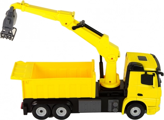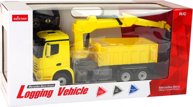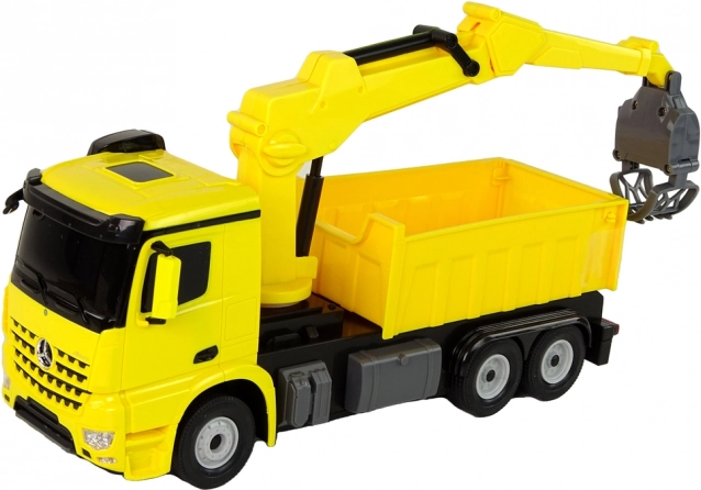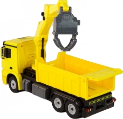 Il realistico camion RC MERCEDES-BENZ Arocs di Rastar in un brillante colore giallo offre ai bambini ore di divertimento. Dispone di una pinza rotante e regolabile in altezza, effetti luminosi e guida fluida con ruote in gomma. Grazie al telecomando gestisce marcia avanti/indietro e sterzata, sviluppando motricità fine e creatività.