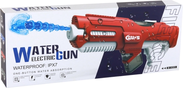 Il riempimento è estremamente semplice: puoi immergere la canna in acqua oppure utilizzare il foro di riempimento superiore. La pistola è alimentata da una batteria da 7,4 V (inclusa) e viene fornita con il caricatore originale per una ricarica rapida. La plastica di qualità garantisce resistenza e lunga durata.