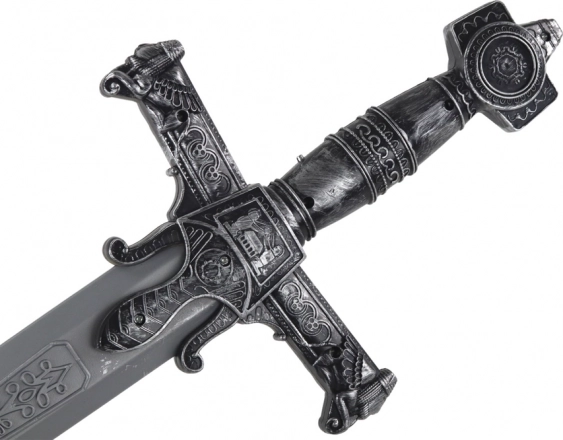 Incisioni dettagliate e modellatura dell'impugnatura conferiscono alla spada un suggestivo stile medievale, ideale per costumi e giochi a tema.