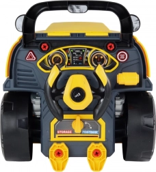 Il bus da officina giallo per piccoli maker unisce divertimento e apprendimento: i bambini possono smontare e rimontare il veicolo, esplorare il cofano apribile e le ruote, usare il volante con clacson, godersi effetti luminosi e sonori e, grazie alle due grandi ruote, trasportare facilmente il loro set officina mobile.