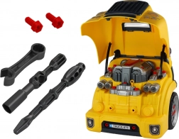 Scoprite un gioco intelligente che sviluppa motricità fine, logica e creatività. L’autobus giallo funziona come un’officina mobile: con gli attrezzi inclusi i bambini sperimentano in sicurezza lo smontaggio e il montaggio delle parti del veicolo, esplorano il “motore” sotto il cofano apribile e imparano i principi della meccanica in modo ludico.