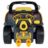 Il cofano apribile e le ruote svitabili permettono ai bambini di dare un’occhiata all’interno del veicolo e di esercitarsi con montaggio e smontaggio grazie agli strumenti inclusi.