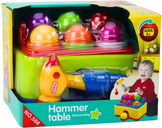 La confezione include tavolo con fori, 6 palline colorate e martelletto sonoro. Ideale come regalo, conforme alle norme CE ed EN71.