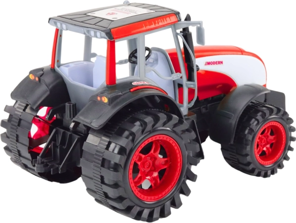 Cabina dettagliata, ruote massicce e il contrasto del colore rosso donano l’aspetto autentico di un vero trattore.