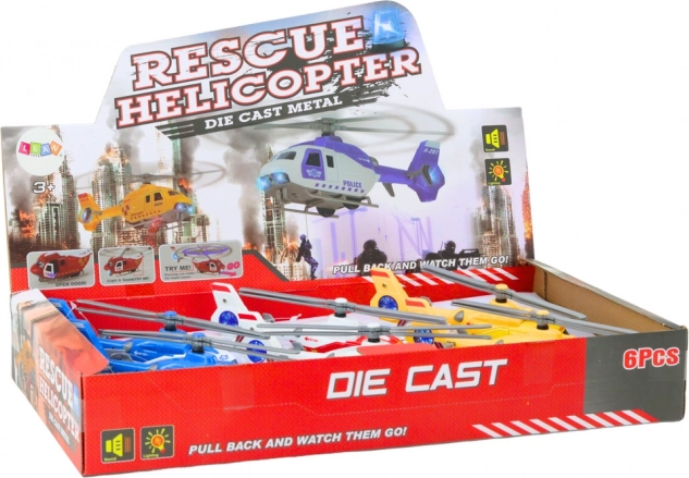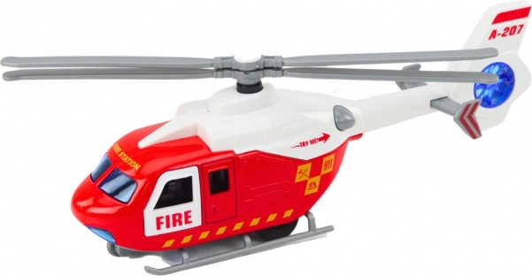 Questo elicottero in metallo, rifinito nei dettagli, entusiasmerà tutti i piccoli fan dei corpi di emergenza. Grazie agli effetti luminosi e sonori riproduce fedelmente le azioni di polizia, vigili del fuoco e soccorso. Le porte apribili permettono di inserire personaggi e accessori ampliando gli scenari di gioco.