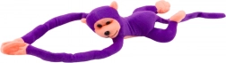 Questa scimmietta di peluche viola conquisterà il cuore di bambini e adulti. Grazie al morbido peluche è perfetta per fare le coccole, mentre le braccia e gambe lunghe con velcro permettono di appenderla facilmente al lettino, allo zaino o di farla abbracciare al polso. Premendo la pancia emette un suono allegro, che stimola il gioco interattivo e la fantasia.