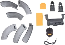 Il set include 6 veicoli pronti per l'azione, che si possono conservare nella base. La base si può ripiegare a forma di valigetta e trasportare facilmente grazie alla comoda maniglia. Il giocattolo funziona con tre batterie 1.5V AA, che non sono incluse.