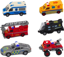 Il set include sei veicoli, come auto della polizia, camion dei pompieri e veicolo di soccorso medico per situazioni di gioco realistiche.