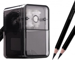 Pratico temperamatite a manovella in elegante colore nero per matite e pastelli standard. Affilatura rapida e semplice tramite manovella, piano di lavoro pulito grazie al contenitore integrato per i trucioli e struttura resistente per una lunga durata. Adatto ai bambini dai 3 anni, con certificazione CE e norma EN71.