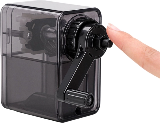 Temperamatite a manovella dal design elegante e funzionale, ideale per scuola, ufficio e studio domestico. Il meccanismo a manovella velocizza l’affilatura e garantisce una mina uniformemente appuntita senza sforzo: bastano pochi giri e la matita è pronta all’uso.