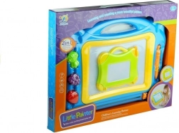 La lavagna magnetica offre un’ampia superficie da disegno con effetto multicolore e una cancellazione fluida con un solo gesto. Grazie alla comoda maniglia i bambini possono trasportarla facilmente, mentre i timbrini inclusi (faccina sorridente, sole e personaggio) creano in un attimo motivi divertenti. È inclusa anche una mini lavagnetta cancellabile, ideale in auto, in sala d’attesa o in visita.