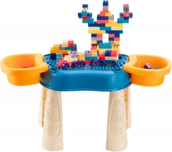 Il tavolino dispone di una superficie adatta ai giocattoli su cui i bambini possono costruire diverse strutture con mattoncini colorati.