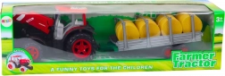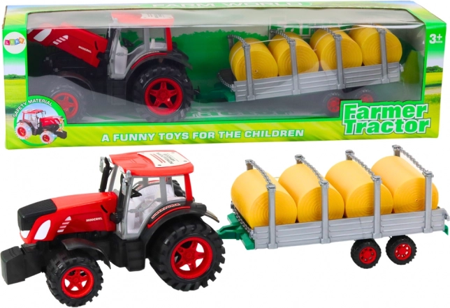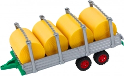 Il trattore è dotato di un rimorchio che contiene balle di fieno cilindriche gialle. Consente ai bambini di simulare il trasporto del carico, aumentando il realismo del gioco.