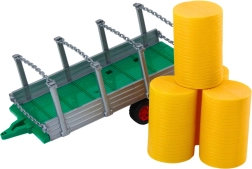 Include un rimorchio con balle di fieno, che permette di simulare le reali attività agricole. La presa di forza posteriore dona dinamismo e realismo all’intero gioco, poiché consente il movimento in avanti del trattore dopo la partenza.