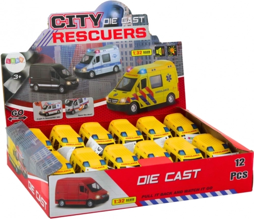 Modello realistico di ambulanza in scala 1:32, è un giocattolo ideale per i bambini affascinati dai salvataggi. Questo modello offre un alto livello di dettagli e elementi funzionali come le porte apribili, effetti luminosi e sonori e un meccanismo a inerzia, garantendo un gioco eccitante e interattivo.