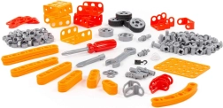 Il set di costruzioni Piccolo Ingegnere da 235 pezzi del produttore Polesie è stato creato appositamente per i piccoli ingegneri. I pezzi sono realizzati sotto forma di robuste strisce con fori. Le strisce si collegano tra loro con viti e dadi. Il set include un manuale dettagliato con cui è possibile creare i modelli illustrati sulla confezione del giocattolo. Giocare con il set non si limita al montaggio seguendo le istruzioni. I piccoli ingegneri possono dare spazio alla fantasia e creare qualcosa di nuovo, rivelando il loro potenziale creativo. I vari tipi di set sono tematicamente diversi ma completamente compatibili. I bambini possono così creare un'intera collezione di modelli!