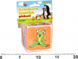 Questo cubo sonoro in plastica con i motivi di KRTEČEK è il primo giocattolo ideale per i neonati fin dalla nascita. Grazie al materiale morbido e sicuro si afferra facilmente con le manine; i colori variati e il fischio sviluppano vista, udito e motricità fine.