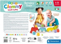 Un trenino morbido con locomotiva e vagoni con cui i bambini possono giocare ed esplorare le superfici con le mani.