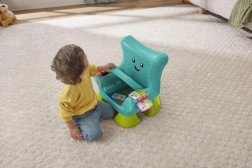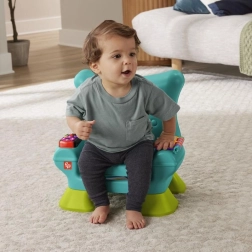 La seggiolina Smart Stages™ di Fisher-Price® offre al tuo bambino un posto accogliente dove giocare e scoprire il mondo. La seggiolina interattiva riconosce quando il bambino si siede o si alza e può reagire con canzoncine e frasi divertenti! Una volta seduto, il piccolo troverà tante attività divertenti, tra cui un telecomando luminoso con pulsanti con numeri e forme, un libricino da sfogliare e un cuscinetto sollevabile con sorprese nascoste. I tre livelli di apprendimento Smart Stages™ includono oltre 120 canzoncine, suoni e frasi che presentano ai bambini colori, forme, numeri, il conteggio e gli opposti durante il gioco. Con il pulsante a forma di globo puoi scegliere la lingua: polacco, ungherese, ceco, slovacco o inglese. Colori e dettagli possono variare. Età 12 mesi e oltre