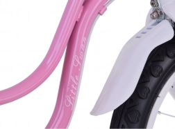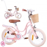 Elegante e sicura bicicletta per bambini 14" ROYALBABY Little Swan per bambine che iniziano a pedalare. Offre stabilità grazie alle rotelle laterali, facile controllo con manubrio ergonomico, combinazione di freno anteriore a pattino e posteriore a tamburo per un arresto sicuro e cestino anteriore per piccoli oggetti. Inclusa anche asta di guida per i genitori.