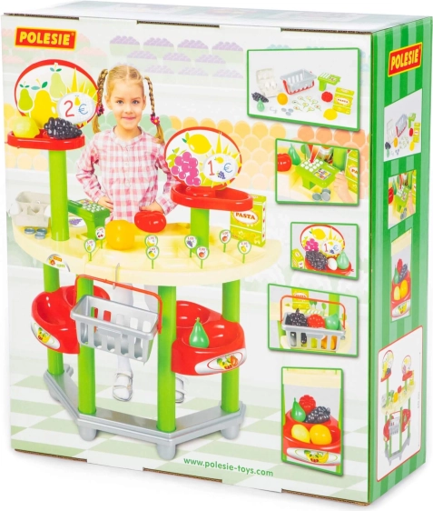 Entrate nel mondo della fantasia con il set di gioco Supermarket del marchio Polesie. Grazie agli accessori realistici, come etichette prezzo, monete e diversi tipi di merce, i bambini creano facilmente l'atmosfera di un vero negozio. Il bancone con scomparti e la cassa stimolano il gioco di ruolo naturale – commesso, cliente, cassiere – e sviluppano l'interazione sociale.