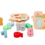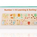 Questo set educativo in legno di alta qualità supporta le abilità matematiche precoci. I bambini abbinano i numeri 1–10 ai tasselli corrispondenti con gli animaletti, acquisendo in modo naturale conteggio e classificazione. La struttura resistente in legno e i colori intensi invitano al gioco ripetuto.