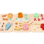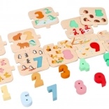 Scopri un modo divertente per imparare a contare con questi puzzle in legno 1–10. Uniscono numeri colorati e illustrazioni di animaletti per un apprendimento giocoso, sviluppando motricità fine, logica e riconoscimento dei numeri. Ideale per bambini da 24 mesi in su.